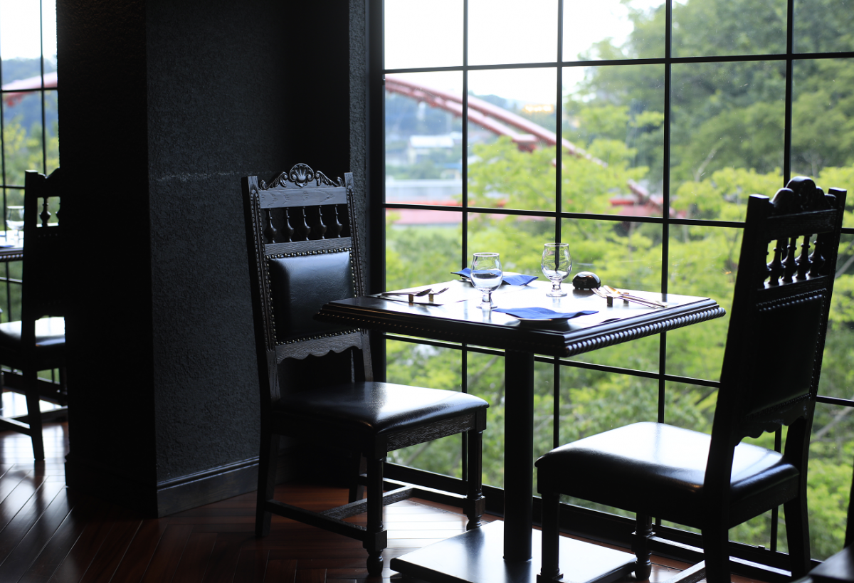 高級感のあるテーブルや椅子などのインテリアは、建物のイメージにあうようにデザインした特注品。