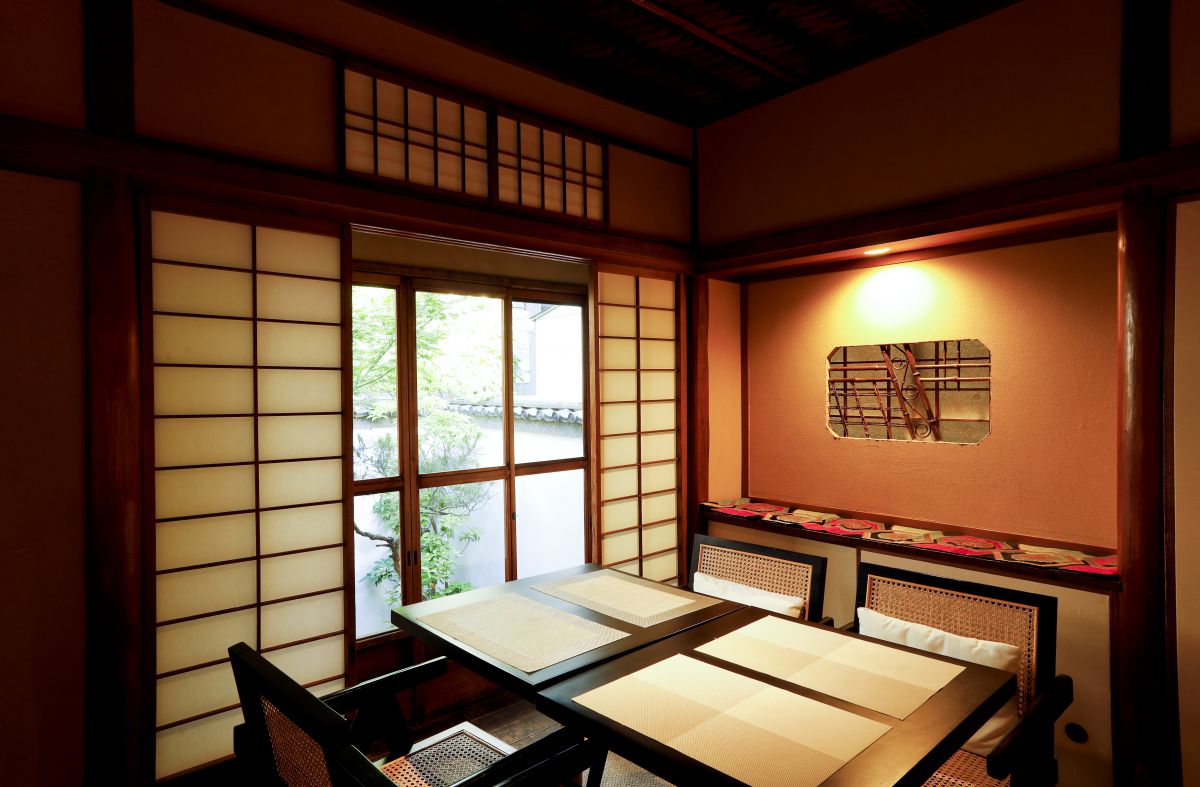 店内は約60席あり、モダンなメインフロアと、箱庭の見える落ち着いた和室の2つに分かれています。京都気分を存分に味わいたいなら、断然和室がおすすめ(予約可)。以前は旅館として使われていた建物ならではの、日本らしい風情を感じられます。