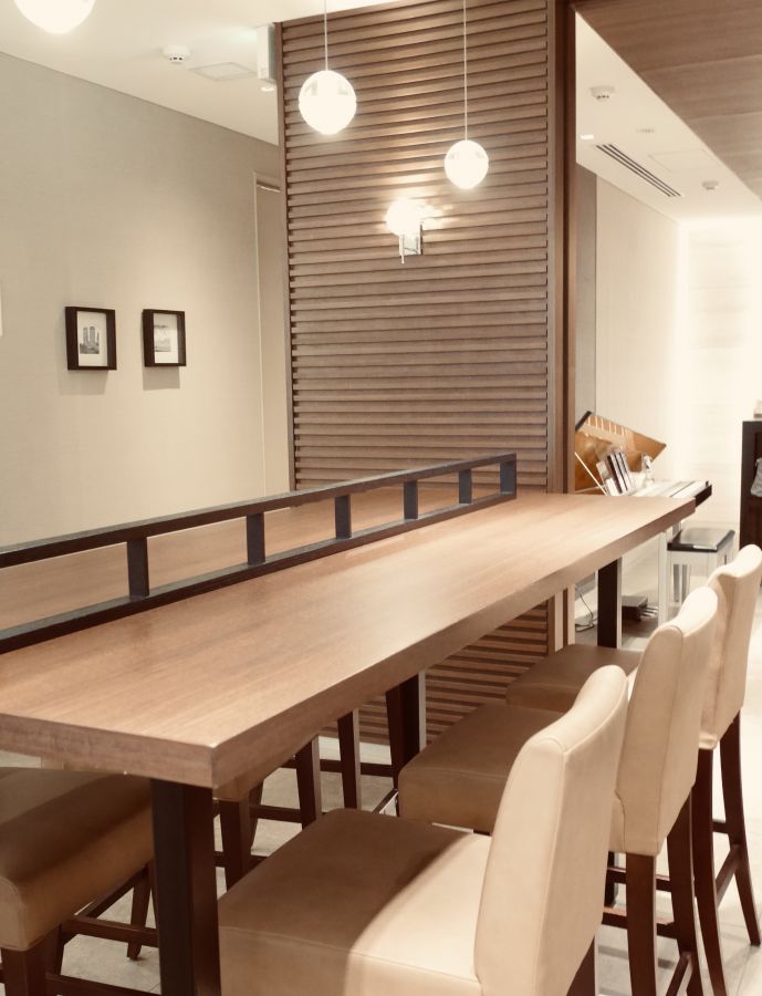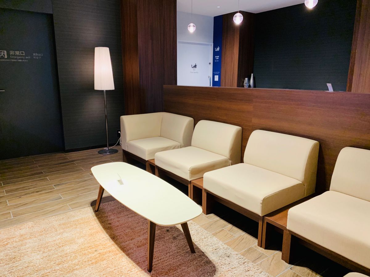 入り口をくぐると、そこは空港のVIP専用ラウンジのよう!奥のエレベーターで2Fのフロントまで上がり、チェックインします。