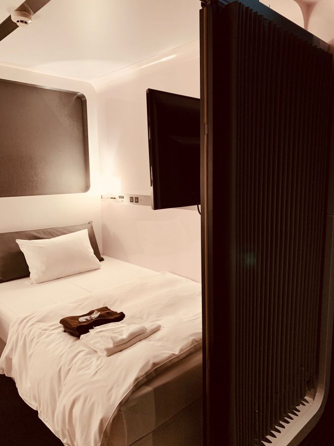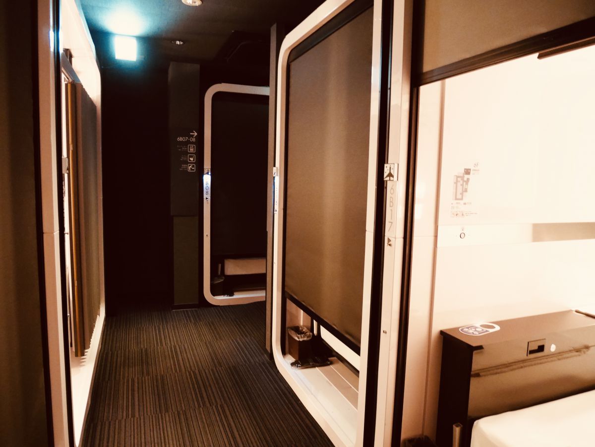 こちらはビジネスクラスのキャビン。通常のカプセルホテルより天井が高いので窮屈な思いはしません。