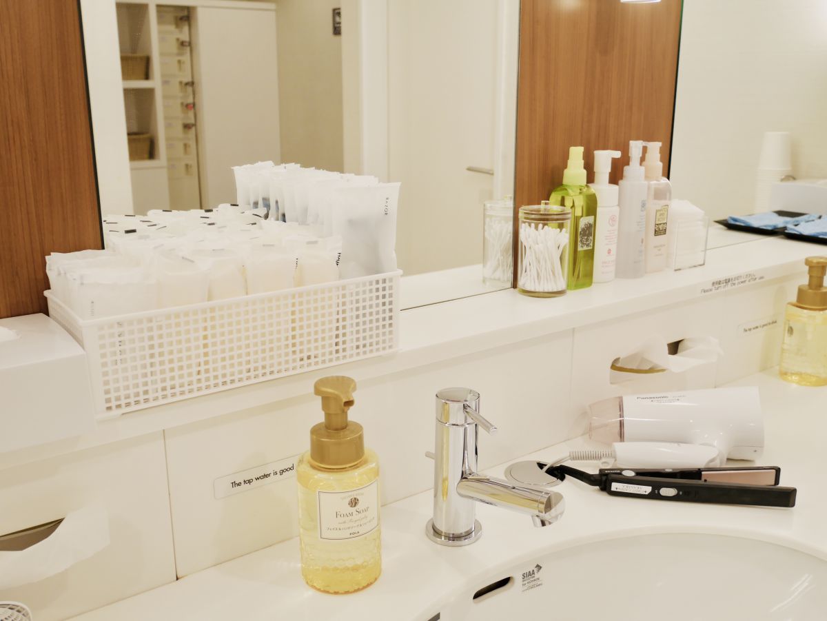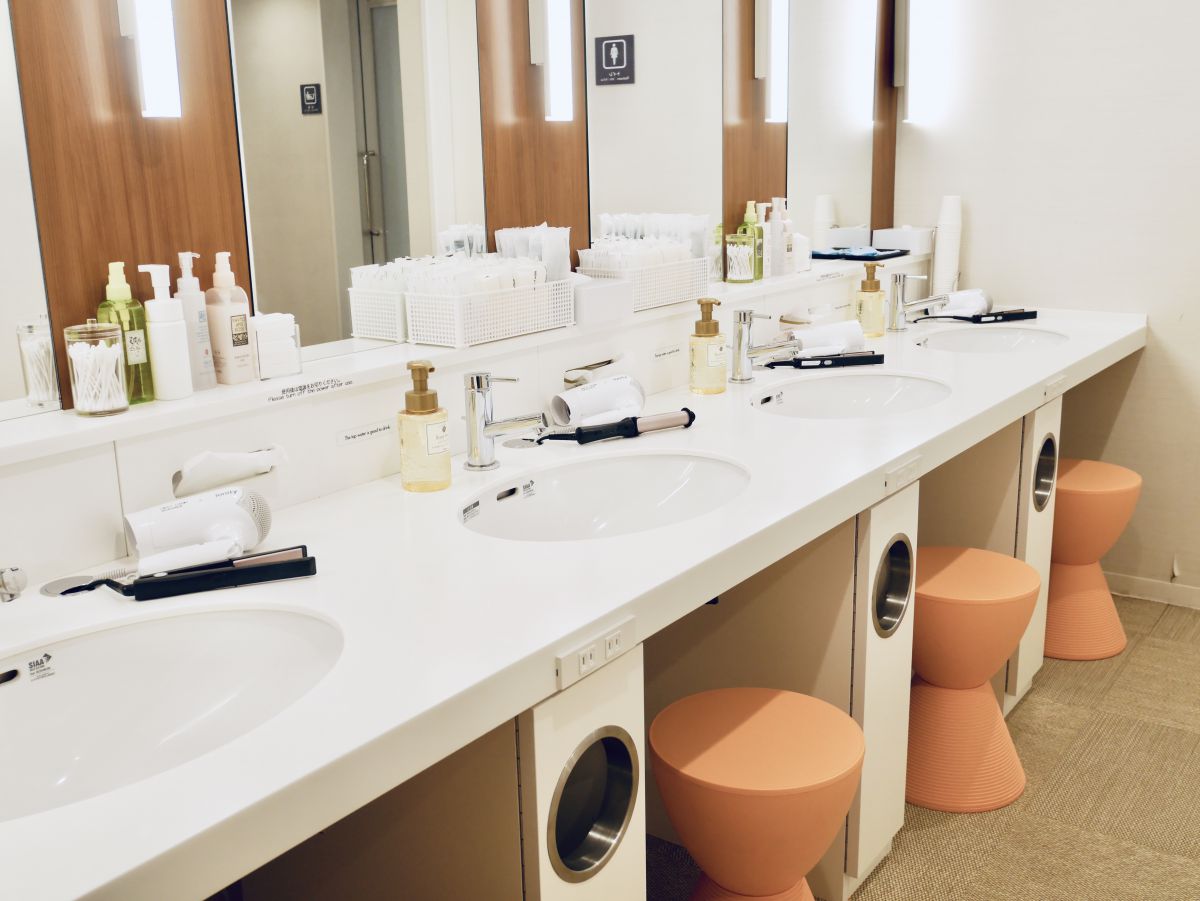 大浴場にはシャンプー、コンディショナー、ボディーソープ、パウダールームにはクレンジング、洗顔料、化粧水、乳液などがありアメニティも充実。