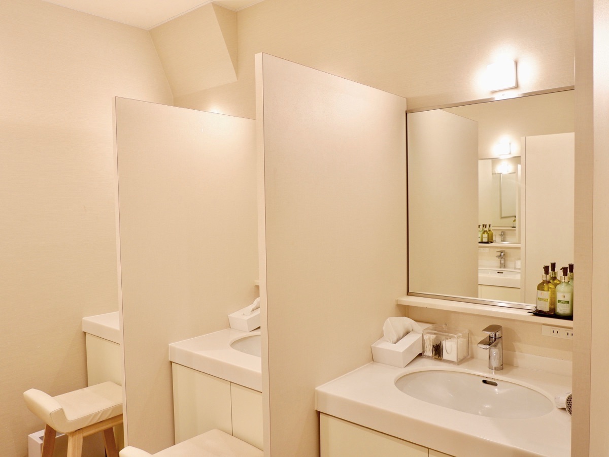 パウダールームもシャワーブースと同じく仕切られているので、すっぴんでも安心!