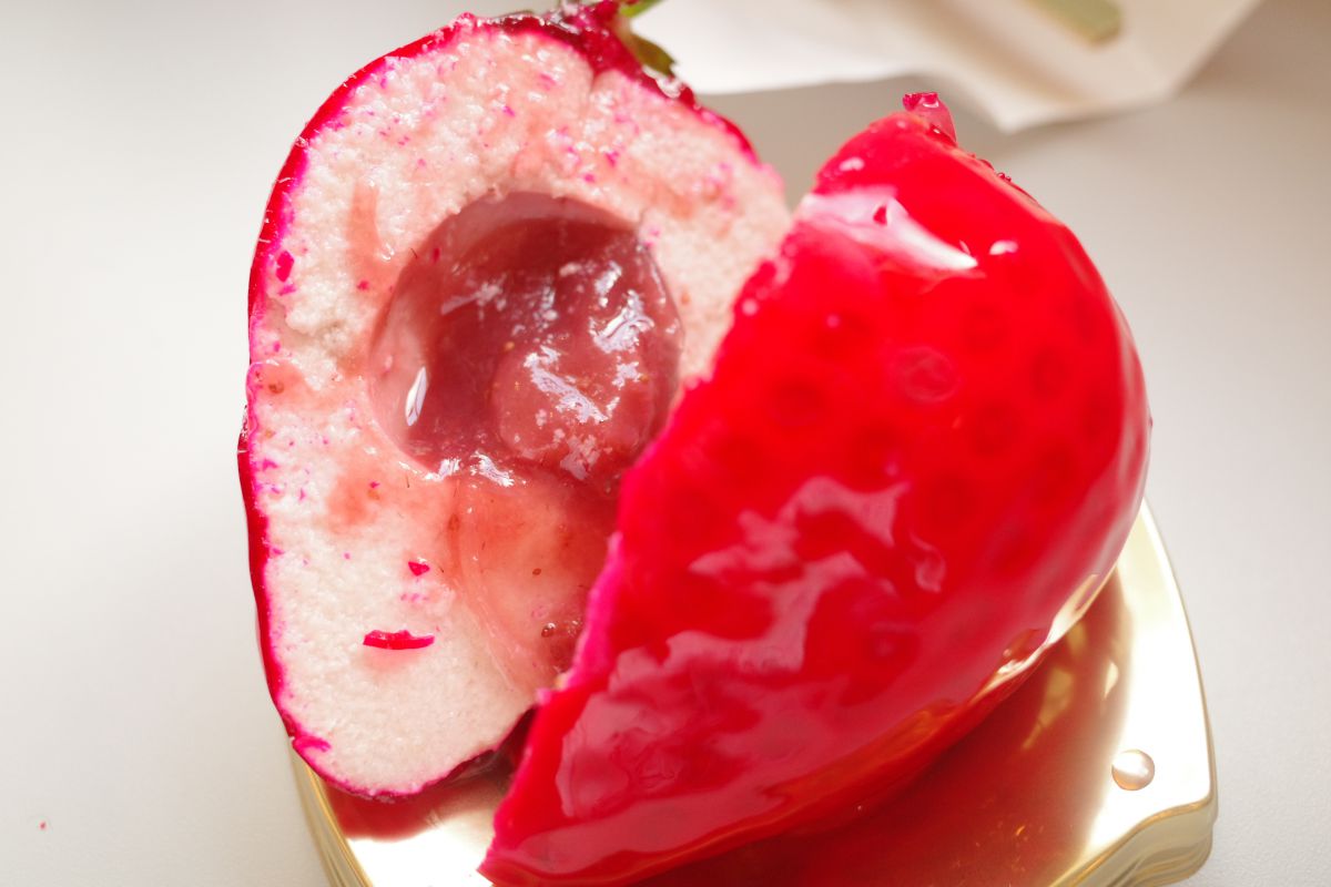 口当たりはとってもなめらか!なかからは甘酸っぱいいちごソースがあふれてきますよ。