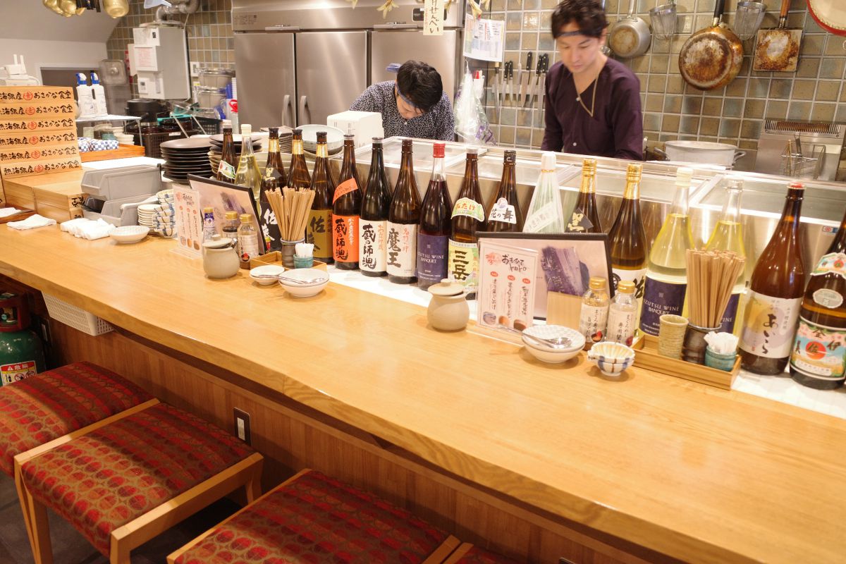 店内には、テーブル席やライブ感たっぷりのオープンキッチンが。店員さんの元気な声が聞こえてきます。