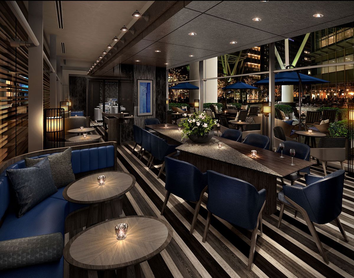 「ザ・リッツ・カールトン カフェ&デリ」の店内は、色味にグレーやブラウン、深いブルーなどを使った落ち着いた雰囲気にリニューアル。新テーマは“1日を通して楽しめるカフェ”。
