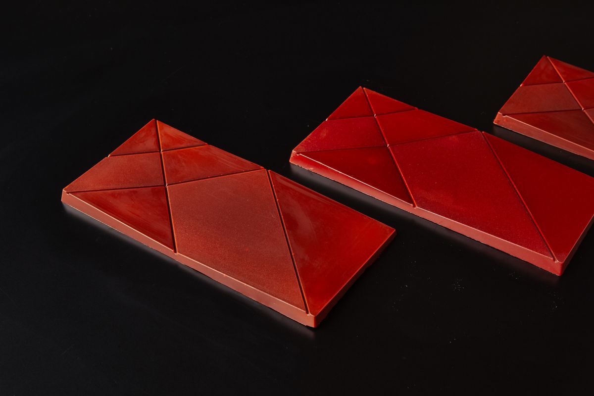 真っ赤なビジュアルの「タブレット・ブラックセサミ・ヘーゼルナッツ」2200円は、ヘーゼルナッツや黒ゴマなどを使用して甘さ控えめ。仕事中はもちろん、お酒と一緒も楽しめる大人の味わいです。