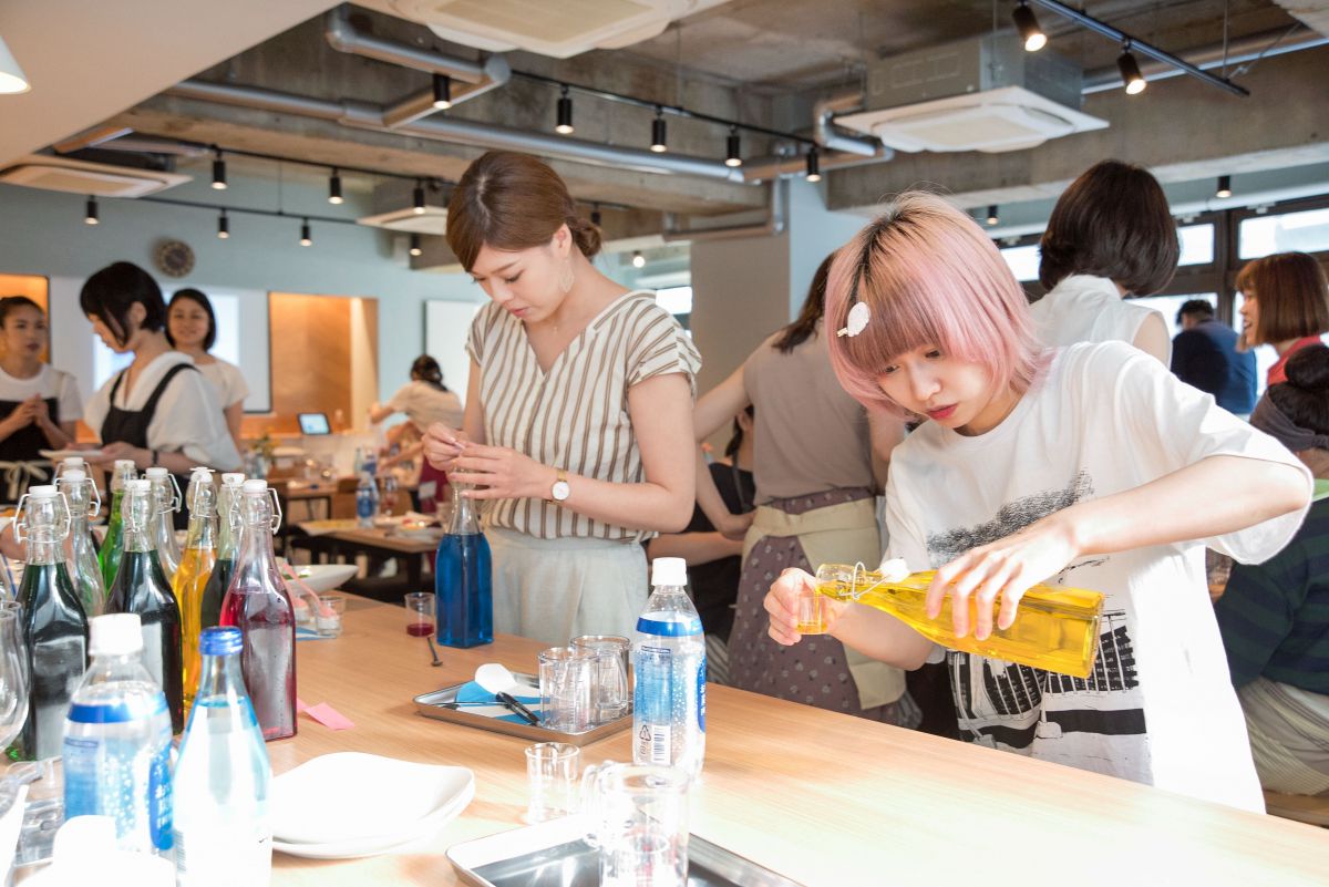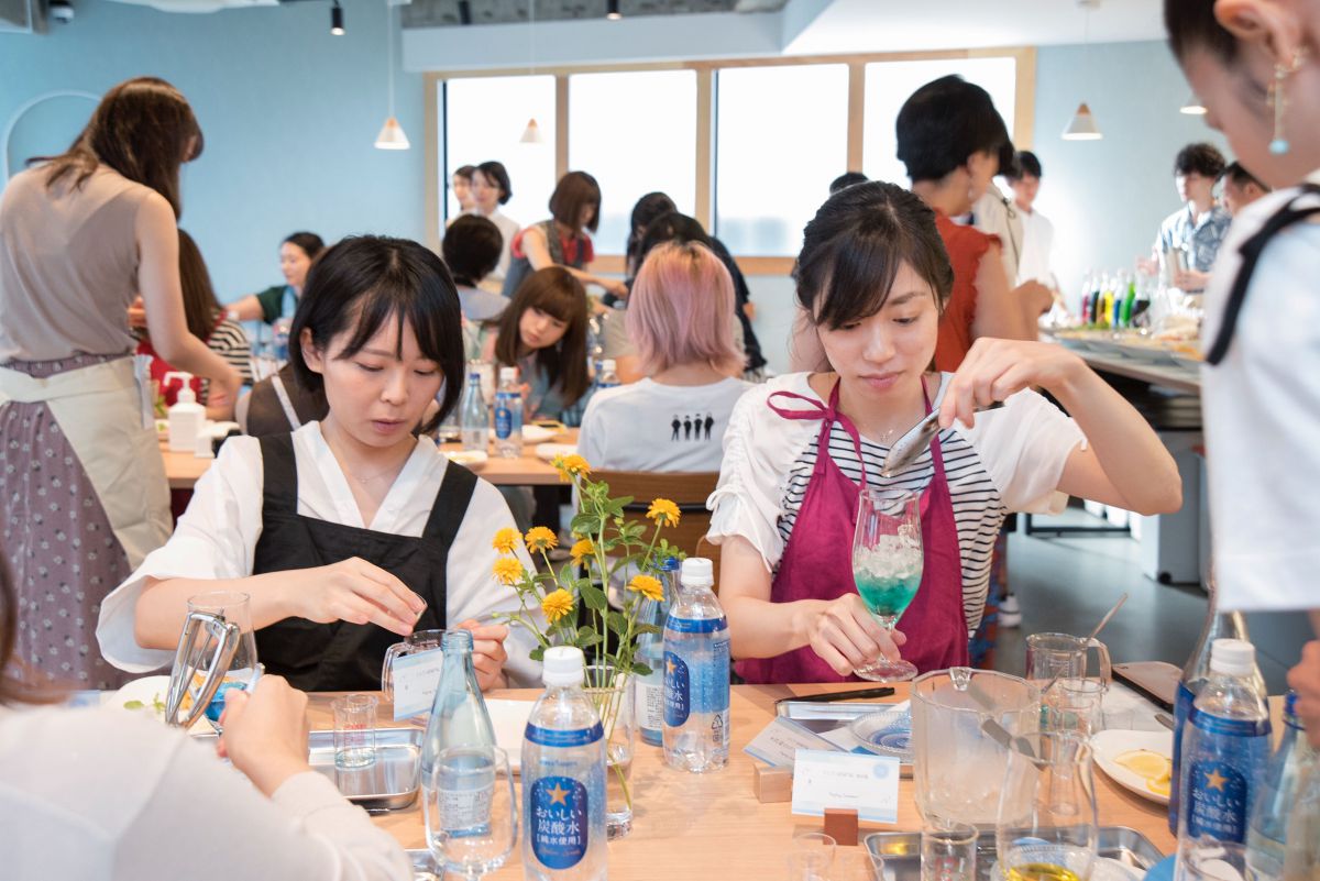 0.5ml単位の細かな計量作業に目を細めながらも、完成すると参加者は大盛り上がり!氷やアイスの入れ方などいくつかのコツを押さえるだけで、キレイなクリームソーダが出来ました。