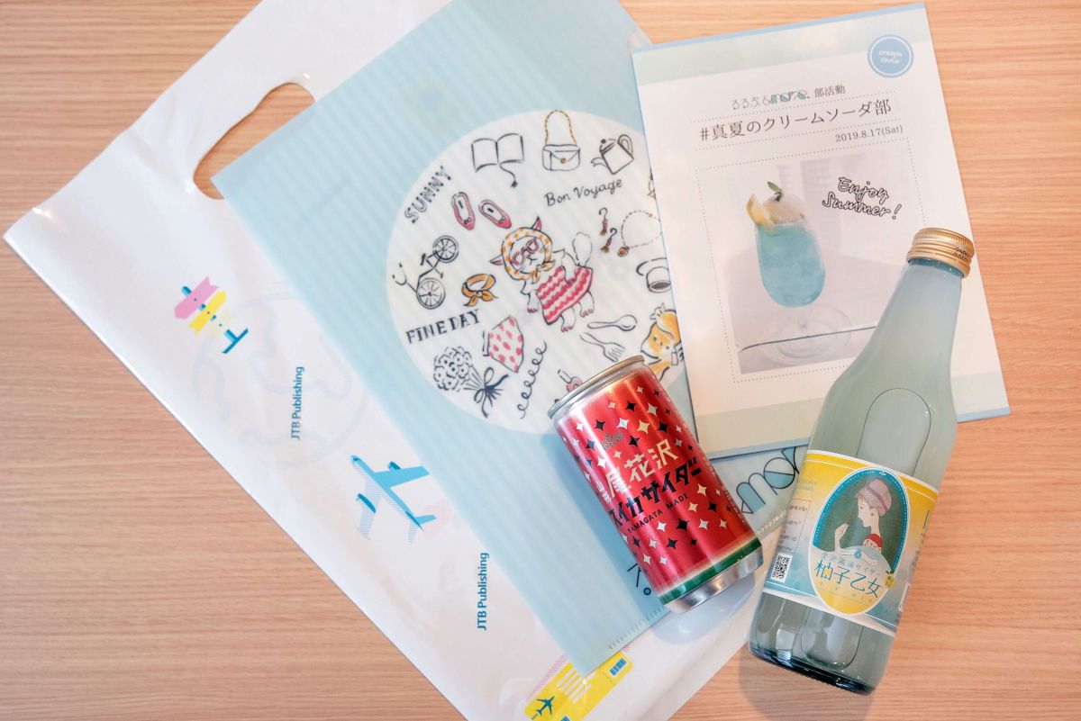 旅好きのスタッフが見つけた、金沢と山形のご当地ソーダと今回のレシピ、オリジナルファイルをお持ち帰りいただきました。