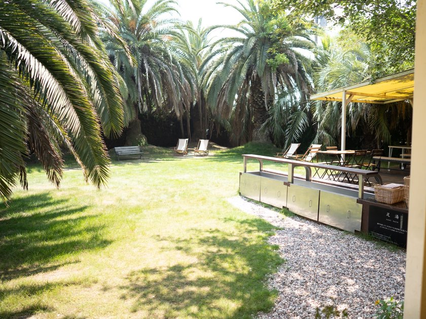尾道・向島にある「立花食堂」。リゾート地のようなすてきなお庭には、なんと無料の足湯があるんです!一般的な足湯と違うところは、 “瀬戸内レモン” が浮かんでいること。
