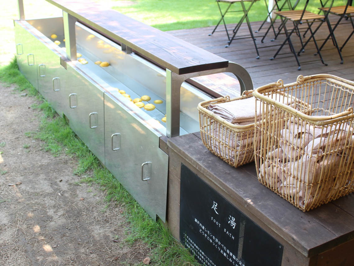 足湯に入ると、レモンの爽やかな香りが広がって、自然とリラックスしちゃいます。観光やサイクリングで疲れた足もすっきり!