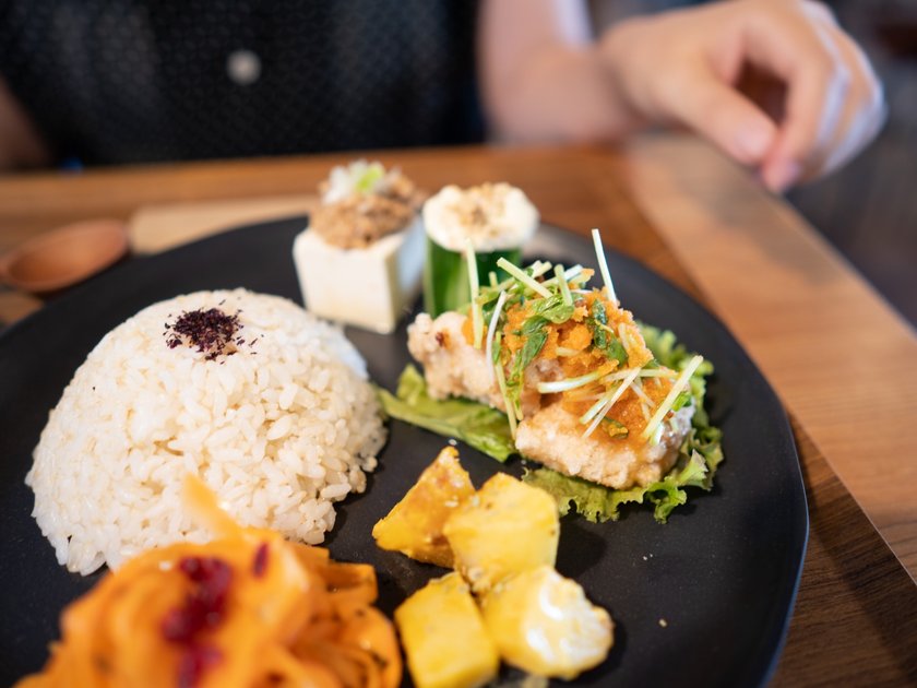 プレートには、野菜をたくさん使ったお料理が並びます。色鮮やかで、体に優しいということが見ただけでも分かりますね。