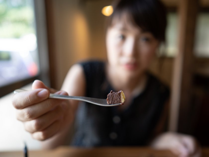 「焼チョコタルト」は、濃厚な生チョコのようなケーキ。一口食べただけでも、チョコレートのしっかりとした味わいが伝わってくる、満足できる濃厚さです。