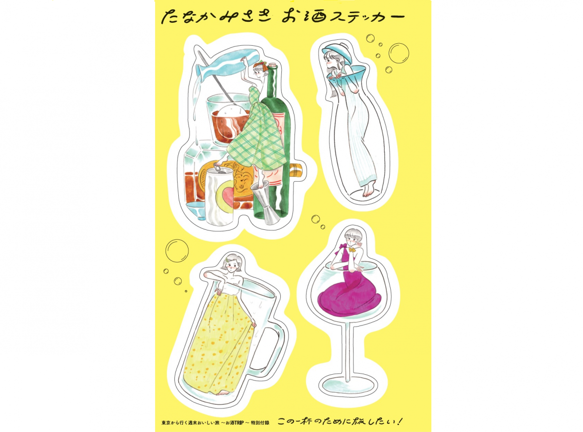 人気イラストレーター・たなかみさきさんがお酒女子をモチーフに描き下ろした特別付録『お酒ステッカー』にも注目です。