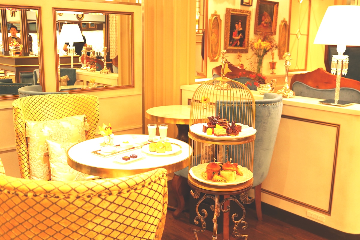 『マリベル・ザ・ラウンジ』をもっとも堪能できるのが、金の鳥かごに美しく飾られたアフタヌーンティーセット。