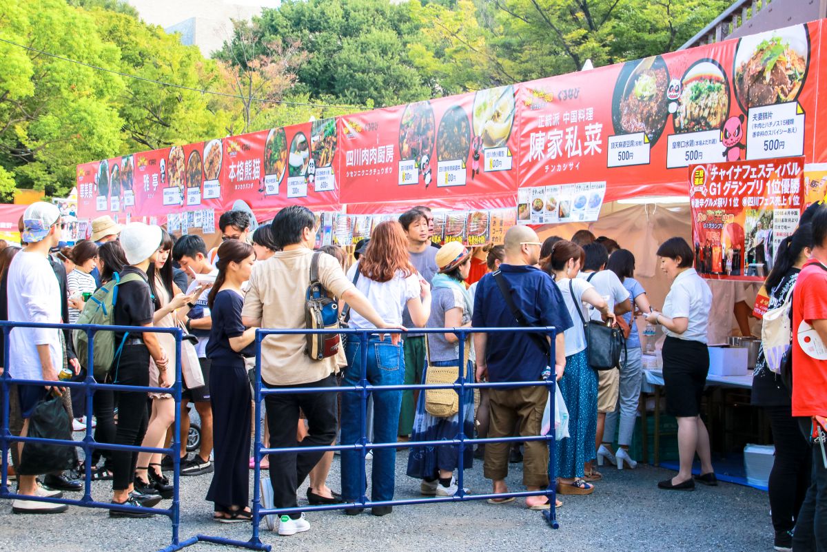 激辛グランプリのほかにも、おいしい飲食店のブースが約50店並び、本場の中国料理を堪能できます。どの店も行列必至ですが、並んでいる間もおいしい香りが漂います。