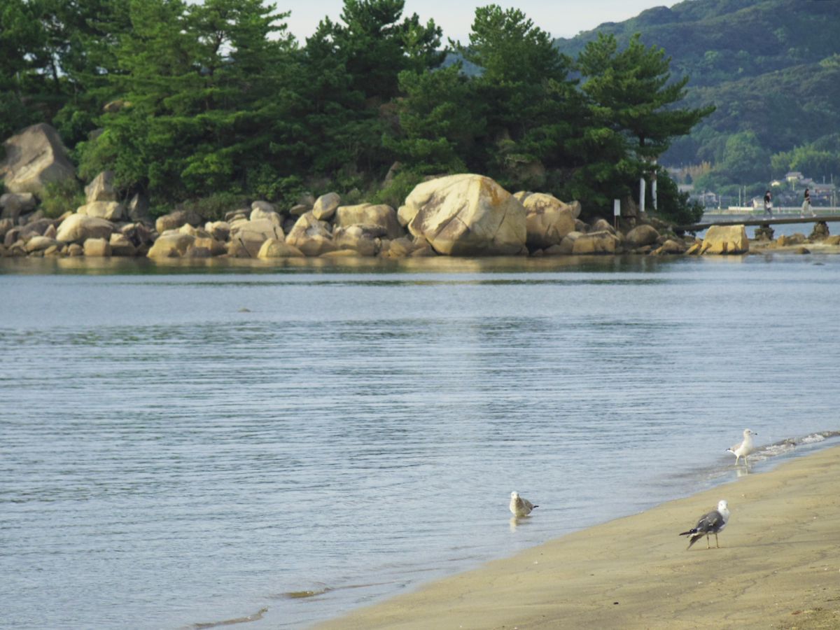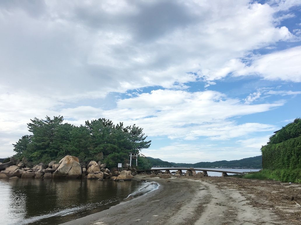 干潮時には浜辺から島まで直接歩いて渡ることができます。満潮時には陸とは切り離されてしまいますが、石の橋でつながっているので大丈夫。
