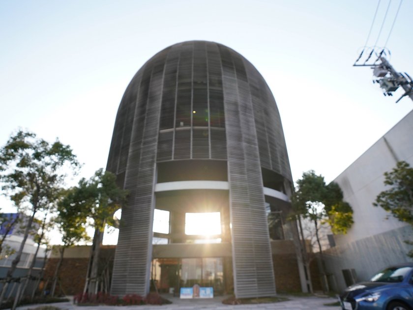 広島市西区にあるオタフクソース株式会社の「Wood Egg お好み焼館」。