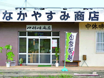 「中休味商店(なかやすみしょうてん)」は、宮古島ではまだ珍しい、カツオと鶏を使ったあっさりスープが特徴の、宮古そばのお店。