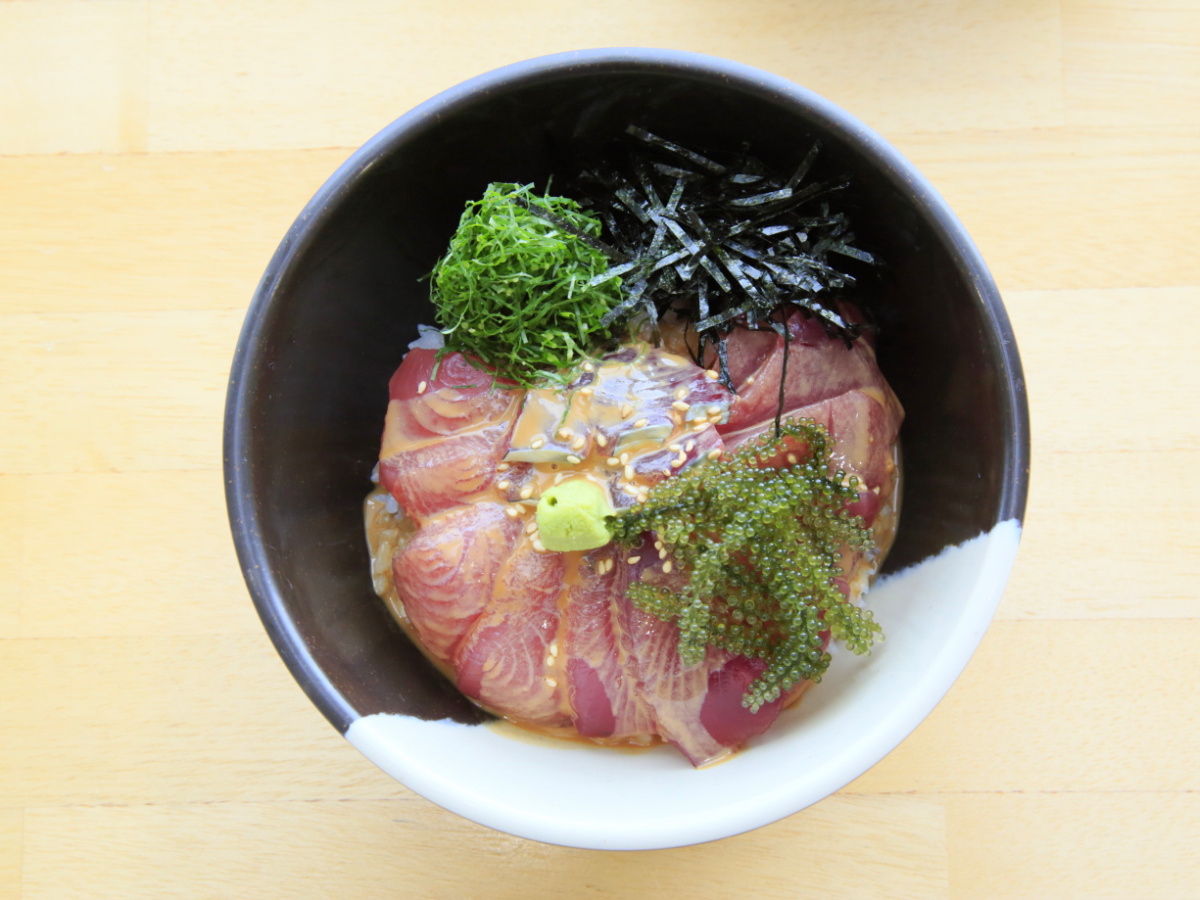 日替わりの魚を特製のゴマダレで漬けにした「胡麻づけ丼」(800円)もおすすめ。海ブドウの食感がアクセントになり、最後まで飽きずにいただけます。