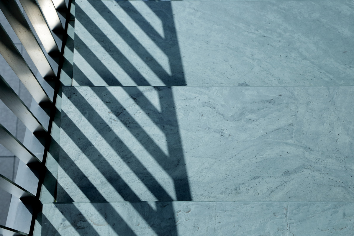 影さえもアート! 2階から正面玄関へと下る階段で出くわした1シーン。