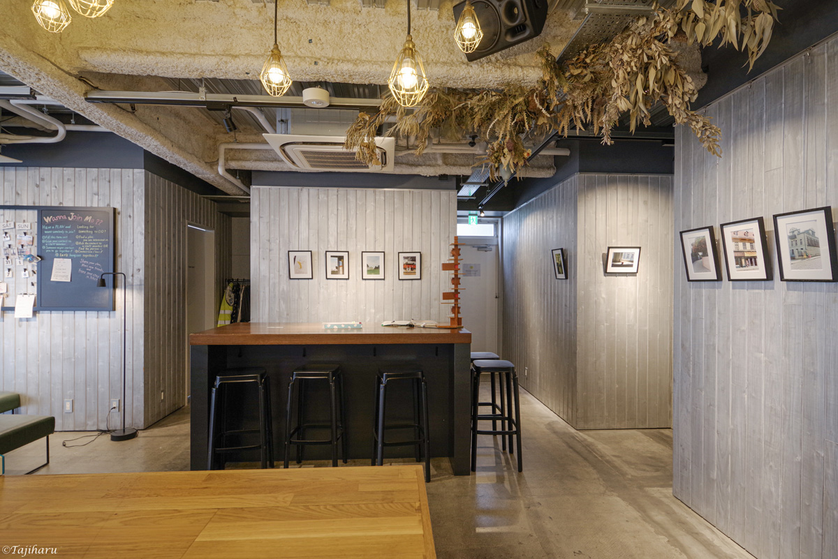一階の壁はギャラリーとして貸し出されていて、その時々によって様々な作品を楽しめます。