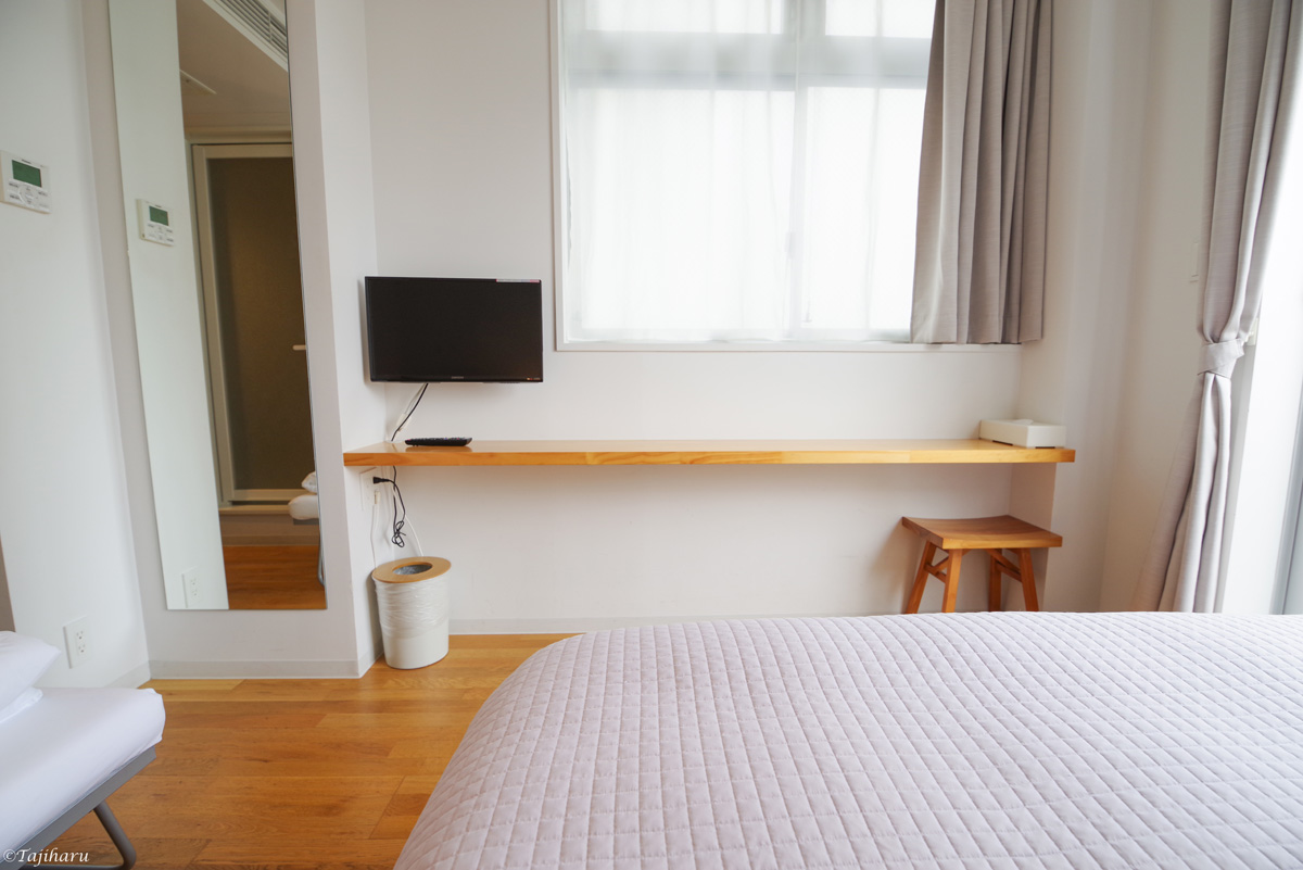 部屋のカウンターテーブルは何か書いたり、ちょっとした物を置いたりと重宝するスペース。