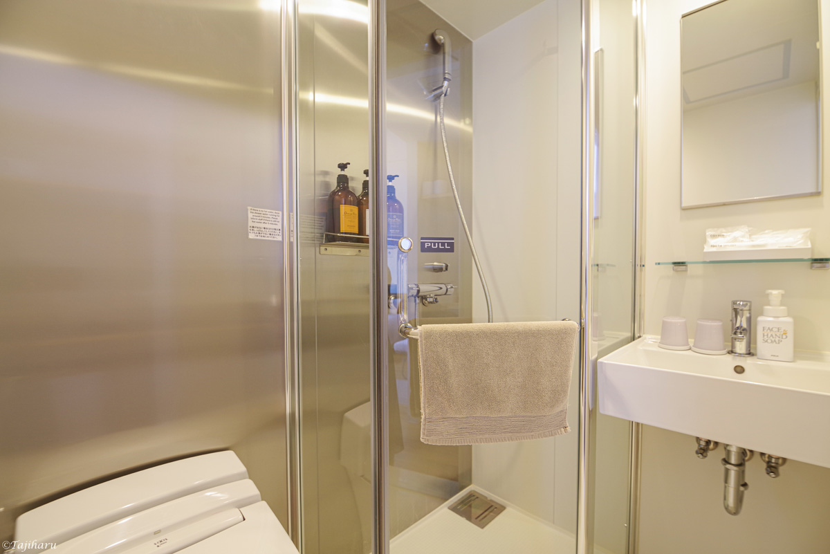 専用バスルームにはシャンプー、コンディショナー、ボディソープが揃っています。スタッフがしっかりと清掃をしているのでかなりピカピカ!ドミトリーのバスルームも隅々まで綺麗でした。