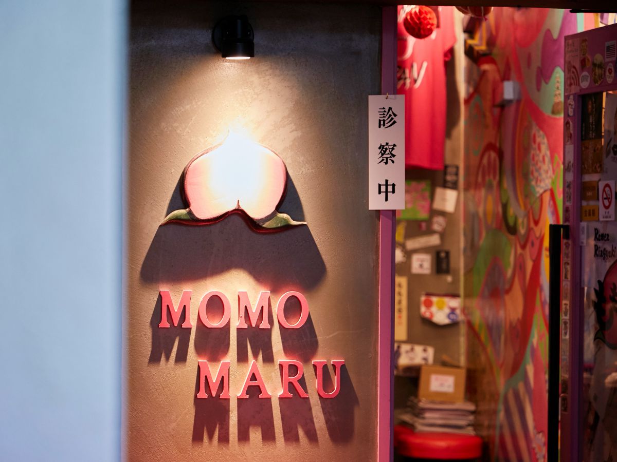 「ももまる」へは、渋谷駅南口から徒歩5分ほど。ピンクの看板が見えたら、地下1階へどうぞ。営業中ならぬ「診察中」のプレートが目印ですよ!