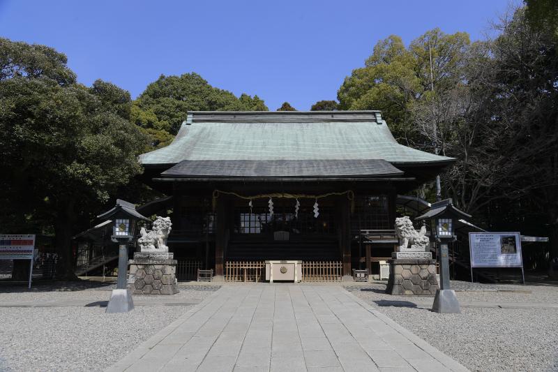 約1600年前の創建で、宇都宮の始祖である豊城入彦命(とよきいりひのみこと)を祭る古社。石垣の一部には、宇都宮市内南部の大谷町で採れる大谷石を使用しています。表参道には宇都宮の「いろは坂」と呼ばれる長い階段があります。