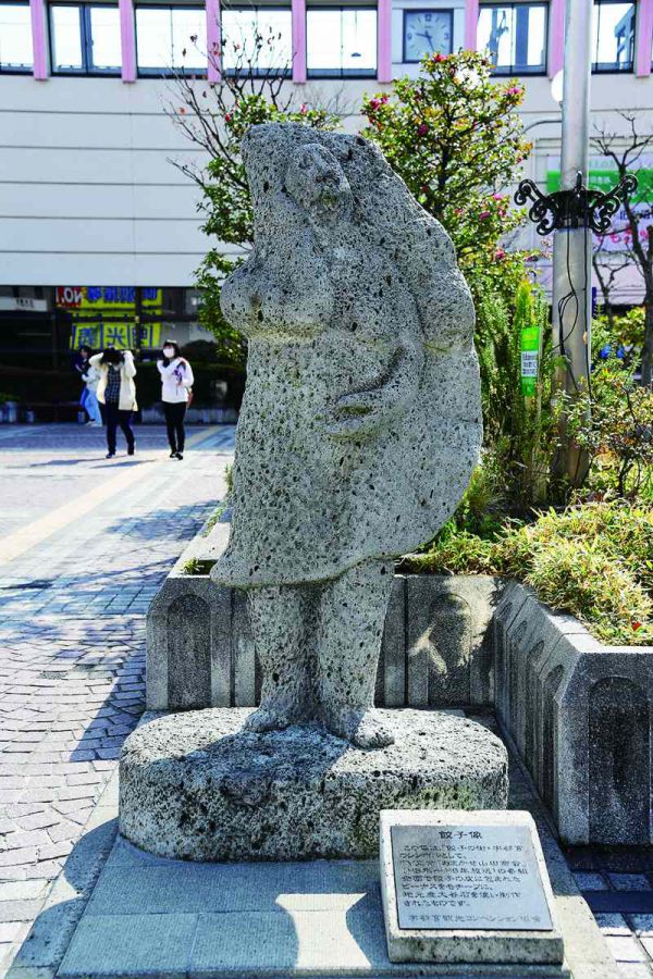 JR宇都宮駅西口2階のペデストリアンデッキにある、宇都宮のシンボルです。ヴィーナスが餃子の皮で包まれている姿が表現された石像。素材は、宇都宮にゆかりのある大谷石で作られています。近くで見ると意外と大きく…なんと、高さは約2m、重さは約1.7tもあるのだとか!