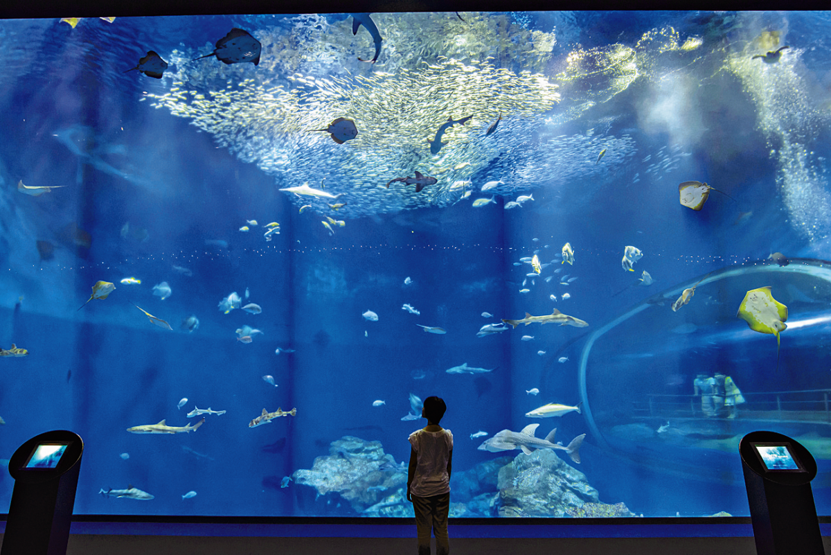 約580種・6万8千点の生き物を飼育・展示する水族館。 大水槽「出会いの海ゾーン」では茨城近海の魚を中心に90種・2万尾が泳ぎます。 館内は、イルカやアシカのパフォーマンスが楽しめる「オーシャンゾーン」など9つのエリアに分かれています。