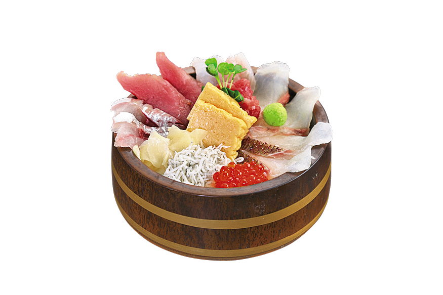 「海鮮ずし 梅花亭」では、旬の地魚を桶からこぼれそうにたっぷり盛り込んだ「浜の地魚丼」2030円が人気です。