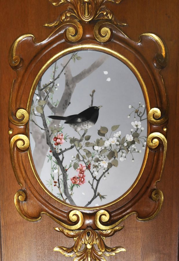 花鳥の間の壁面を飾る30枚の七宝焼は、天才といわれた涛川惣助の作品です。