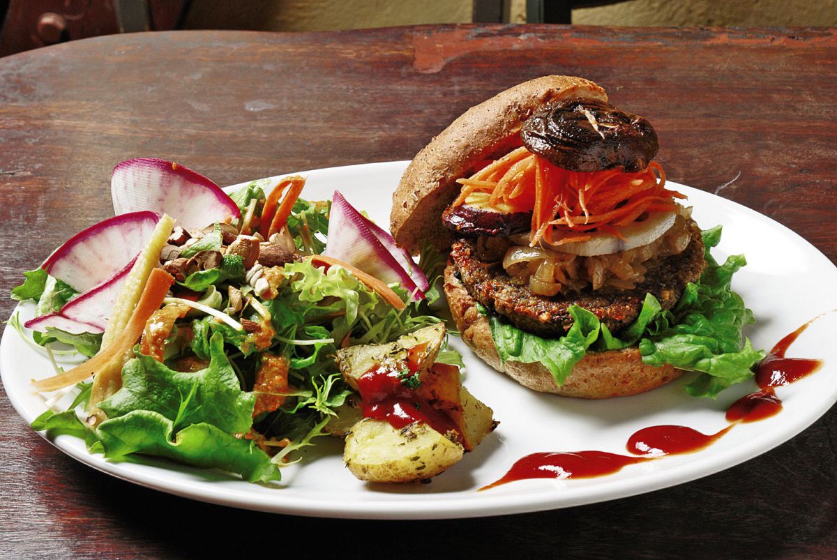一番人気のベジバーガープレート1300円は肉不使用でボリューミーながらヘルシーです。