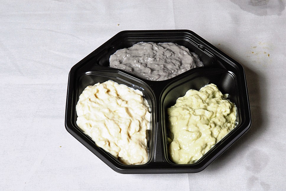 産地によって違う豆の風味を食べ比べられる三食ゆば950円(土・日曜のみ販売)が人気です。