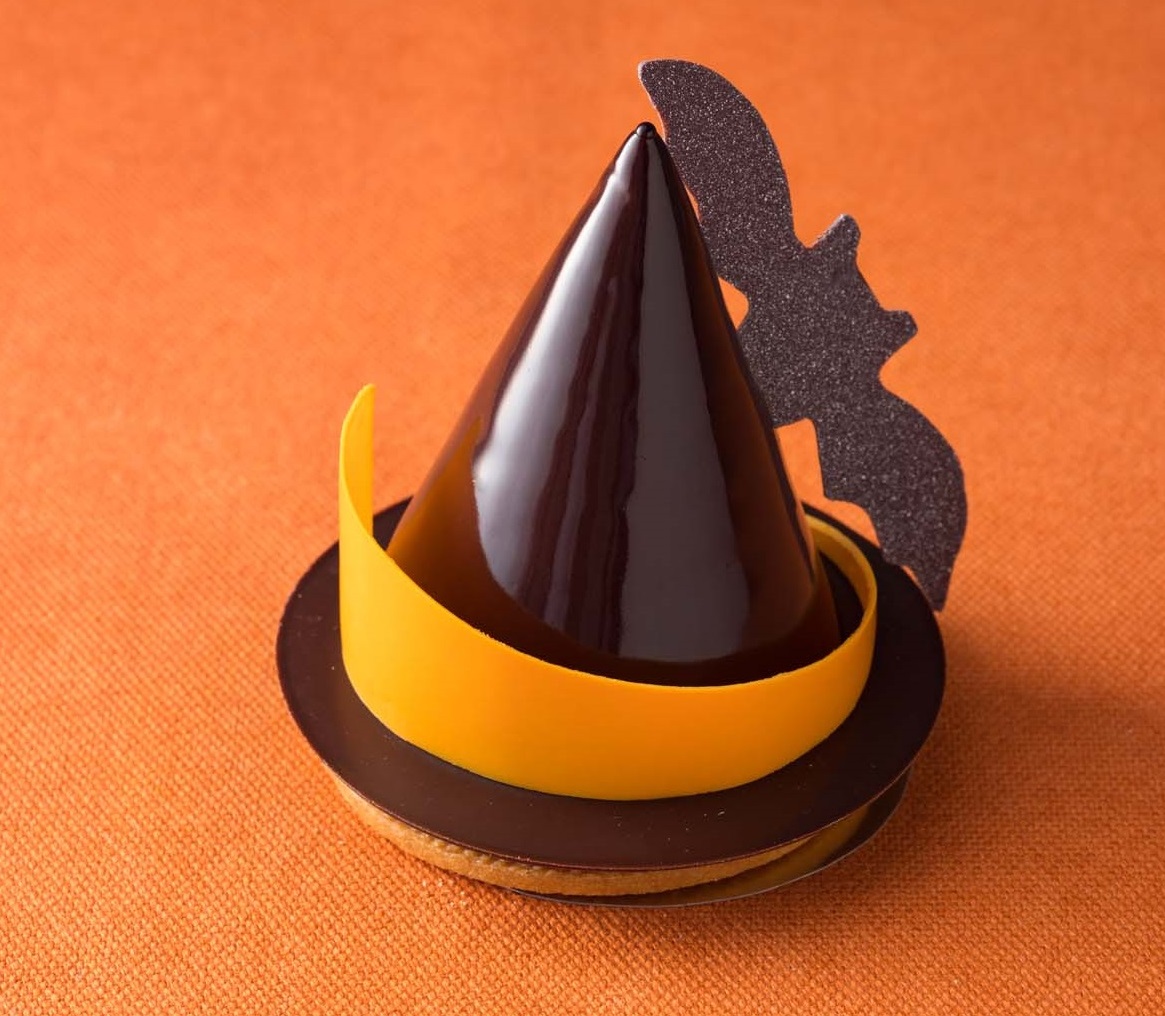 オレンジアメールを使用したほろ苦く深みのある味わいのクレームブリュレと、口溶けのよいガナッシュをミルクチョコレートのムースで包んだ「ウイッチハット」650円。鼻に抜けるオレンジの香りを楽しめるスイーツです。