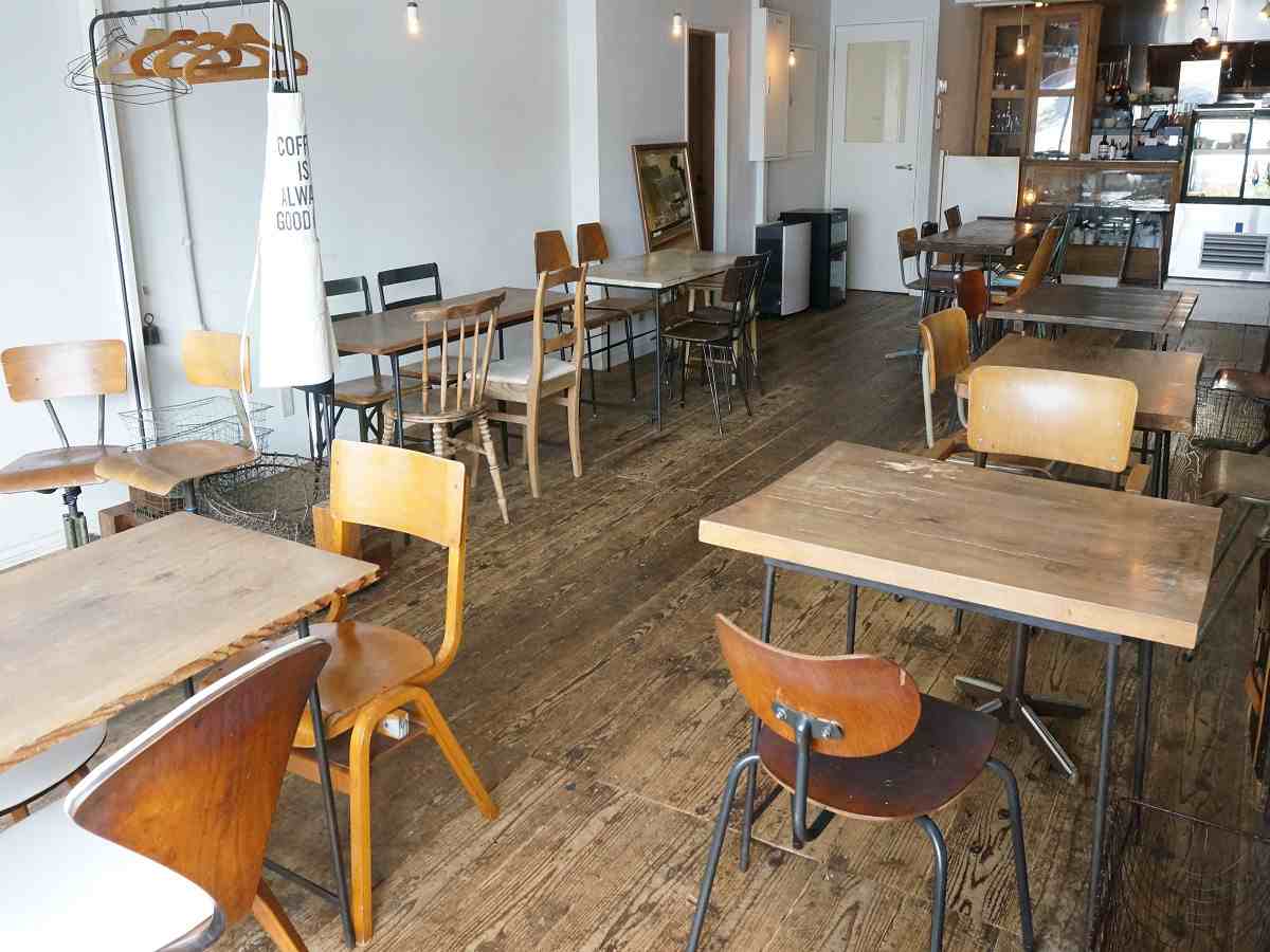 1つ1つ種類が違うテーブルと椅子。どこに座ろうか迷ってしまいますね。
