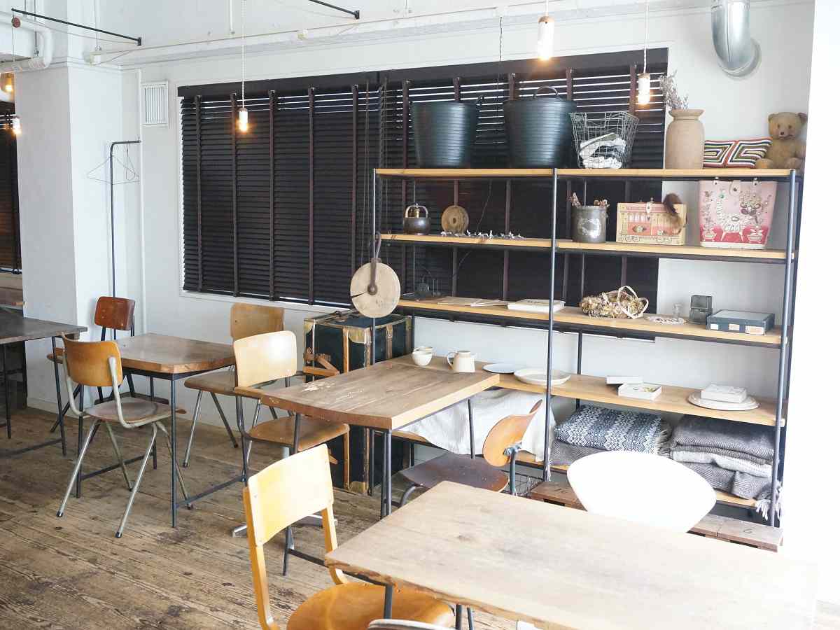 アンティークの照明や家具がおしゃれな店内