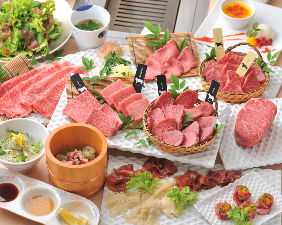 上タン、熟成和牛希少部位、熟成和牛サーロインなど、自慢の品々を一挙に味わえるのが、「【飲み放題2時間付き 6800円】焼熟成和牛希少部位3種や熟成和牛サーロインの焼きすき等 全10品」(1名6800円)。心ゆくまで熟成肉を楽しめるにも関わらず、価格は手頃なため、思わずリピートしたくなるはず。