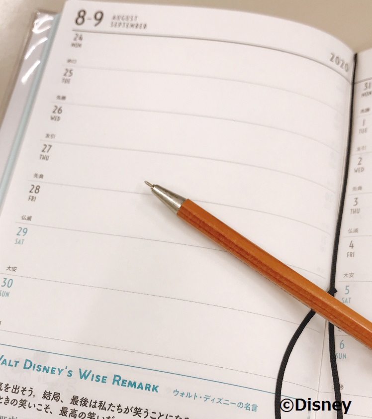 ウィークリーの左ページの下にはウォルト・ディズニーの名言が。毎日が元気になれる、そんな言葉の数々がちりばめられています。