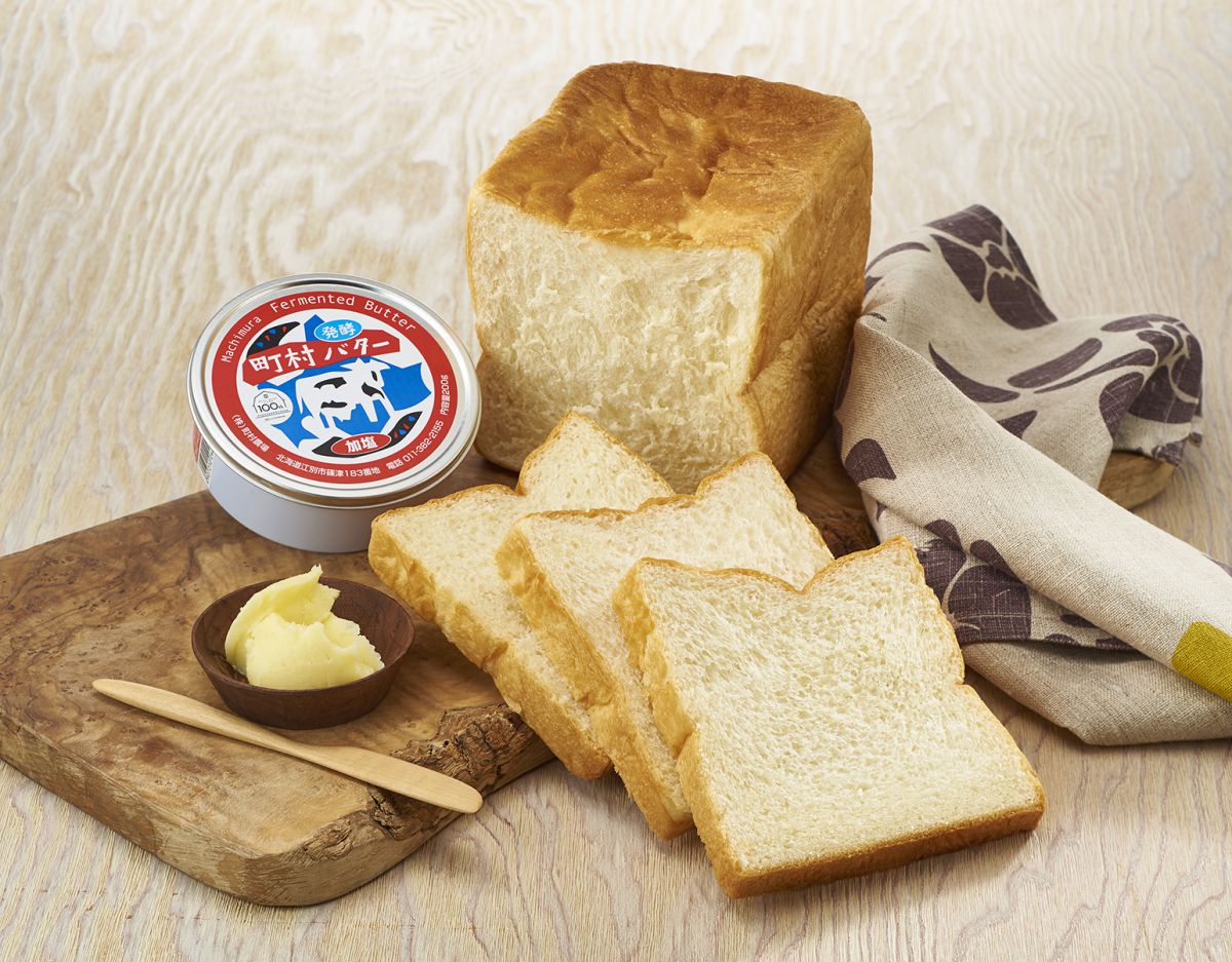 江別市「町村農場」では、「自家工房の牧場食パン」1袋702円や、その食パンと一緒に味わいたい「町村発酵バター」1944円を販売します。