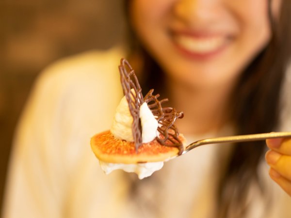 一番上の飾りも素敵。チョコレートでできた繊細なチョウが、大きくカットされたいちじくの上に止まっているんです。食べるのがもったいないと思ってしまうほどの美しさ。チョコレートのくちどけと、いちじくの優しい甘さをバランスよく堪能することができます。