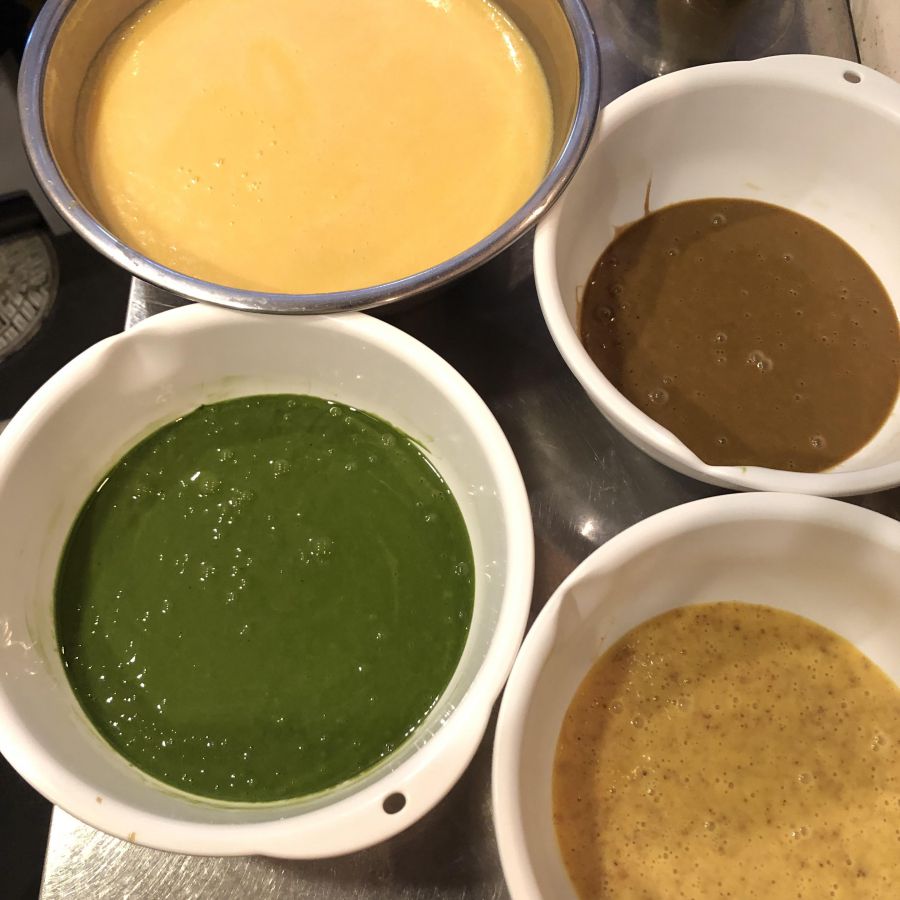 ちなみに、どらやきの生地の色も、素材によってこんなに違うんですよ!