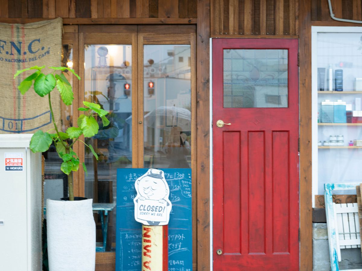 「自家焙煎珈琲UNION白島店(じかばいせんこーひーゆにおんはくしまてん)」は、白島駅から歩いて10分ほど。木目の壁に赤い扉が目印の、絵本に出てきそうなお店です!