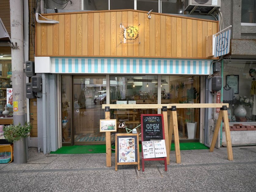 広島・尾道にある紅茶専門店「サイクリングと紅茶を楽しむお店 カフェしましま」は「尾道絵のまち通り」という商店街の中を歩いてすぐのところにあります。可愛い水色のしましまが目印。