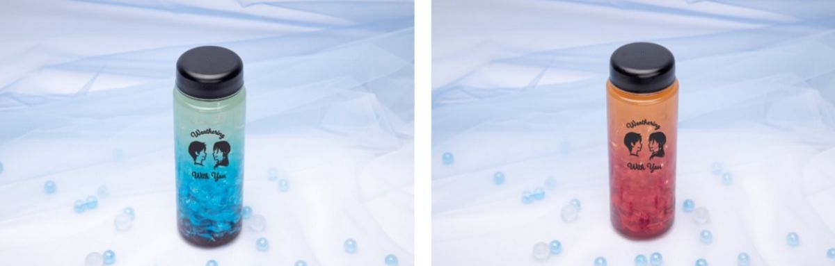 劇中の印象的な晴天と夕焼けのシーンをオリジナルボトルに詰めたテイクアウトドリンク各1690円。