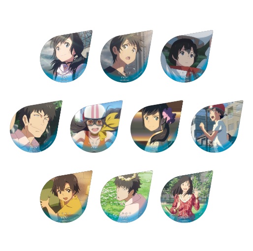登場人物の印象的なシーンを切り取った「雨つぶステッカー(ランダム10種)」400円。