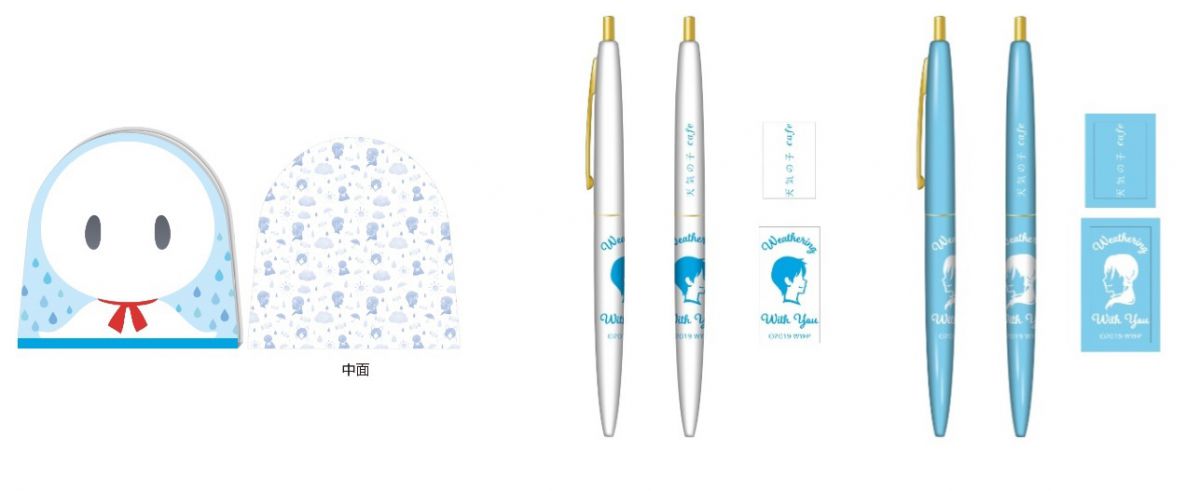 「てるてる凪のメモ帳」(左)800円」や、「BICボールペン(穂高・陽菜)」各500円などの文房具も。