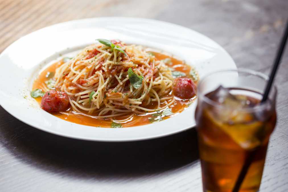 この日のパスタランチは夏らしさが漂う「鎌倉産トマトの冷製パスタ」。さすが新鮮野菜だけあって、バジルのしっかりした風味と、トマト本来の甘みがほんのり感じられる本当においしい一皿でした。ドリンクが付いて1382円。