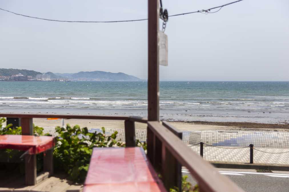 2階のテラスからは、目の前に遮るものなく七里ヶ浜が見渡せます。